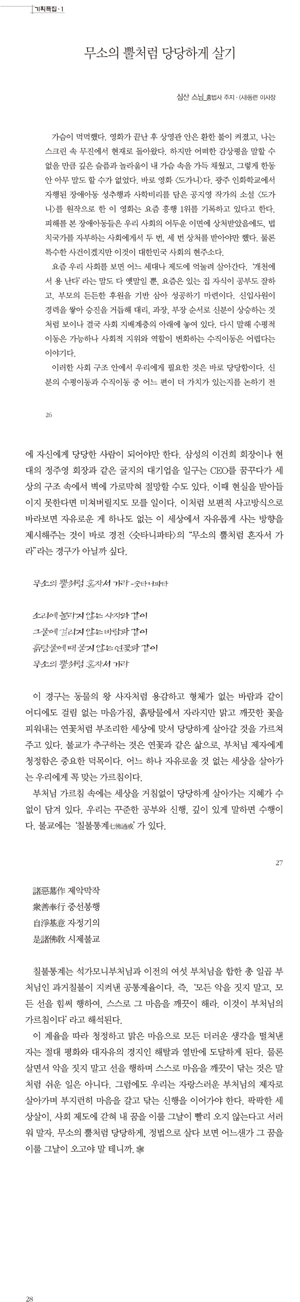 무소의 뿔처럼 당당하게 살기