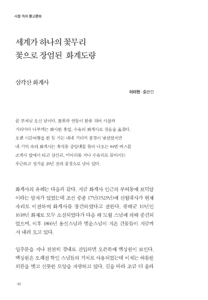 사찰 속의 불교문화 - 세계가 하나의 꽃무리 꽃으로 장엄된 화계도량