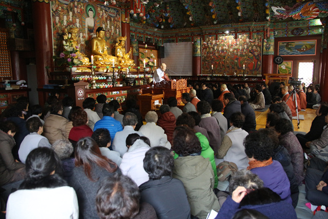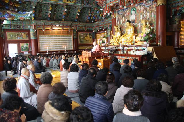 축서사 문수선원장이신 금곡 무여 큰스님을 모시고 사부대중이 대웅전에서 동지법회를 여법하게