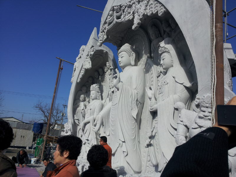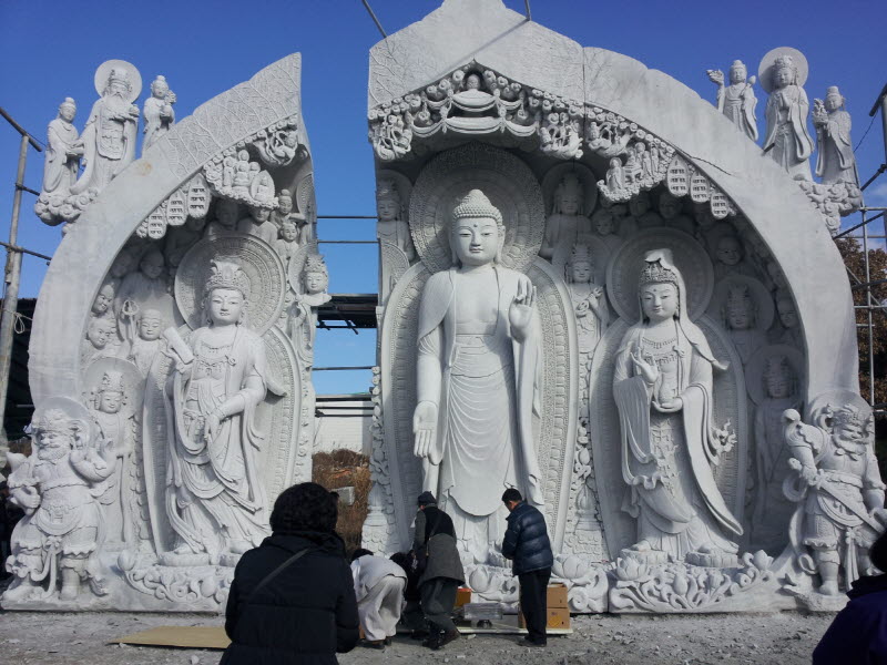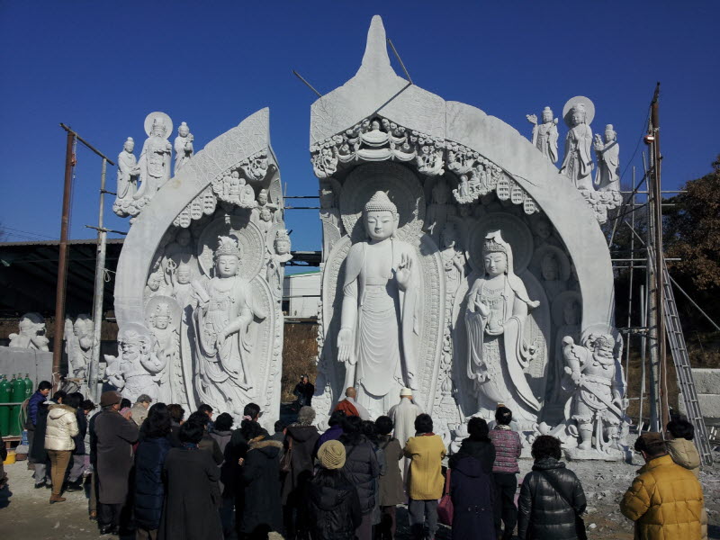 가로가 15m 높이가 13m로 화강암으로 충남 논산에서 무형문화재인 작가님의 손에의해 만들어지고 있습니다.
