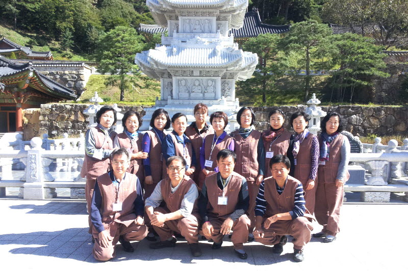 프로그램 진행하기전 입산을 기념하기 위하여참가하신 분들은 보탑앞에 포즈를 취했습니다.