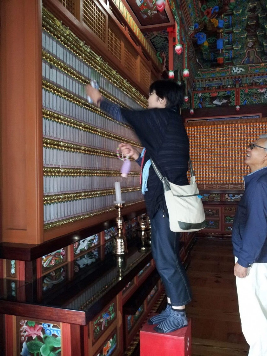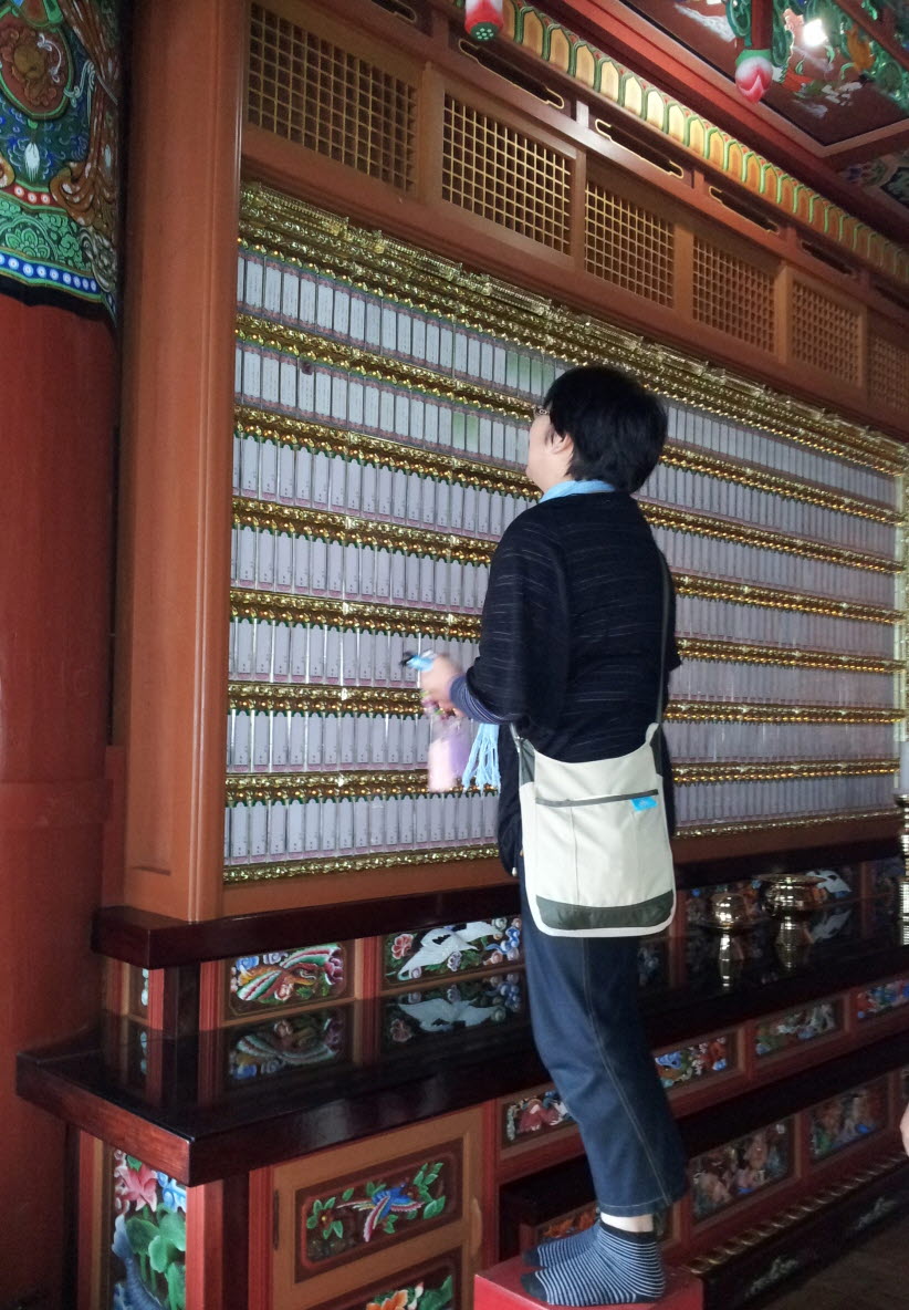 손자가 생전에 좋아했던 젤리와 사탕을 사다 보여 주며 " 아가야 여기서 편안하지, 여기 네개 좋아하던 것 가져왔다" 축서사 대웅전내 많은 만년위패중 사진까지 넣어안치되어있는 손자위패를 마치 손자를 대하듯 말하는 모습이 편안해 보였습니다.