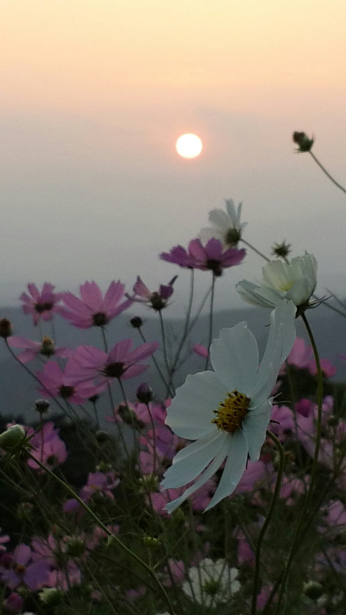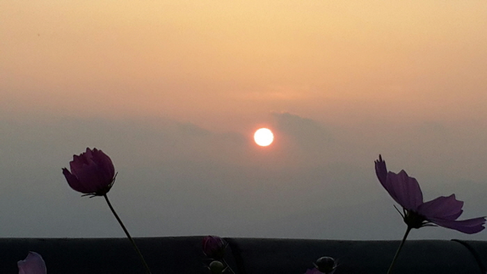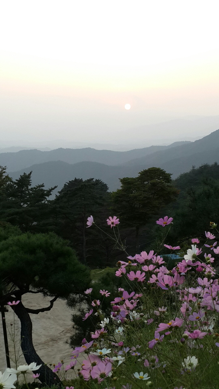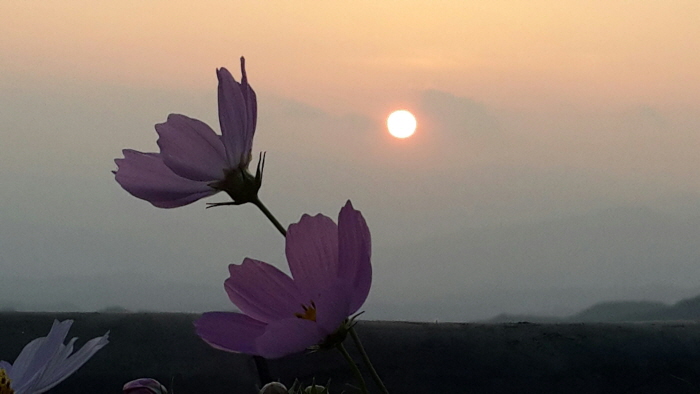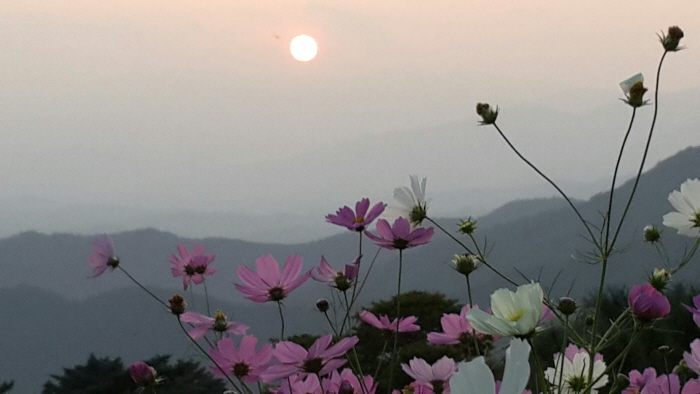 이 가을... 코스모스 사이로 석양이 길게 소백산에 걸처진 아스라한 풍경, 자연의 극치를 몇장 올려드립니다.