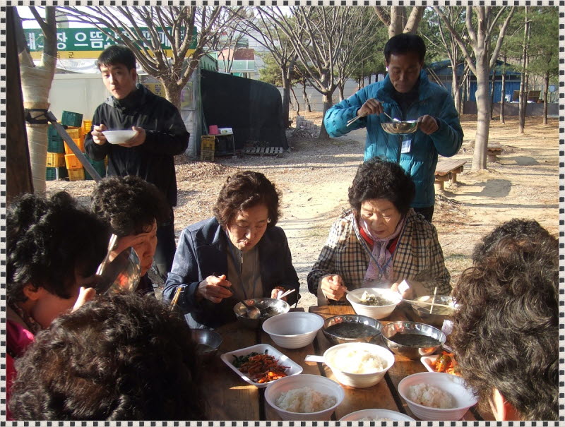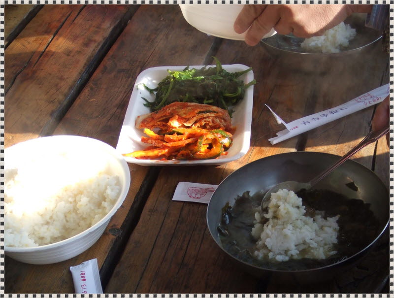 수덕신 부회장님이 보시해주신 맛있는 미역국과, 김치, 산채무침등으로