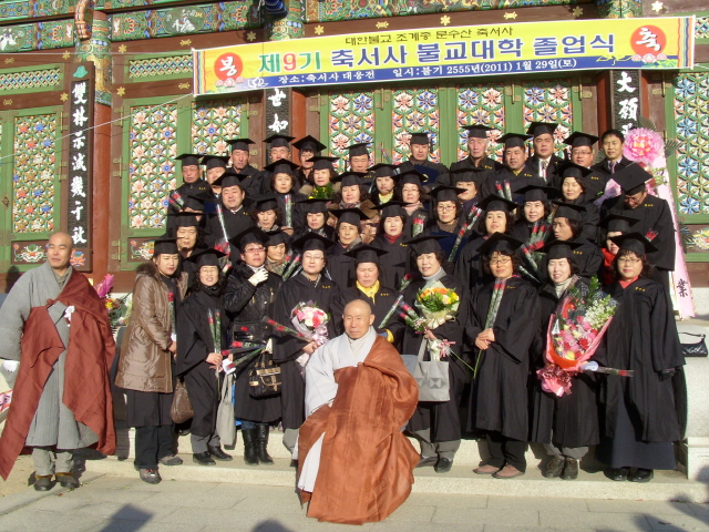 멋진 사각모를 쓰고 학장, 학감스님을 모시고 기념촬영을 하셨네요.