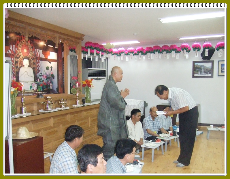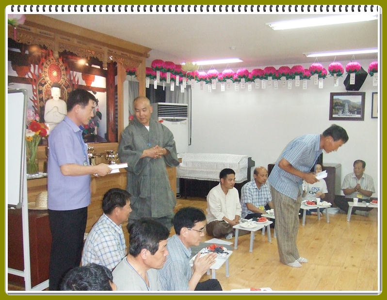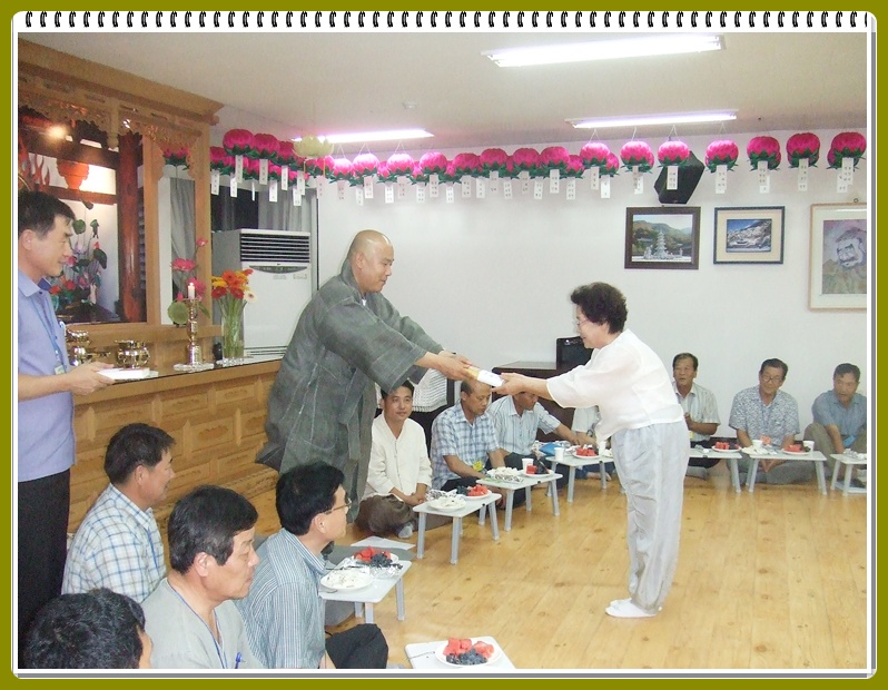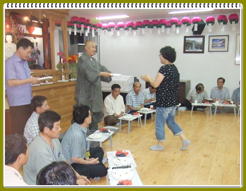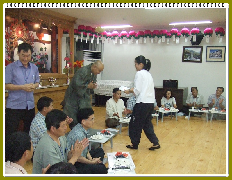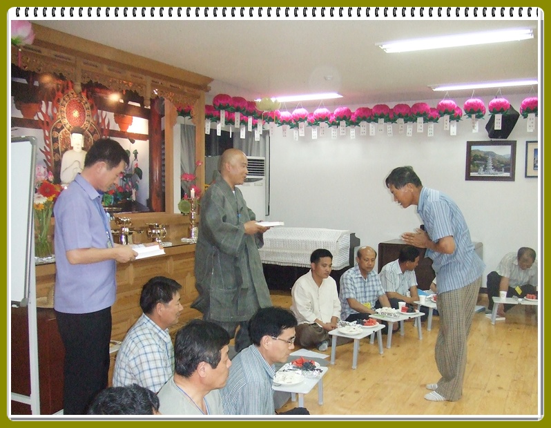 잘 써주신 김승택,김기환, 남영자,홍사분 도반님들께는 사무처장 여환님이 준비한 특별상으로 "숫타니파타"를 선물하였으며, 도반님들의 목마름을 해소하기 위하여 감로생수를 받아주신 선행화님과, 축서사홈페이지관리를 열심히 잘 해주신 무상행님께는 봉사상으로 "법구경"을 선물하였습니다.