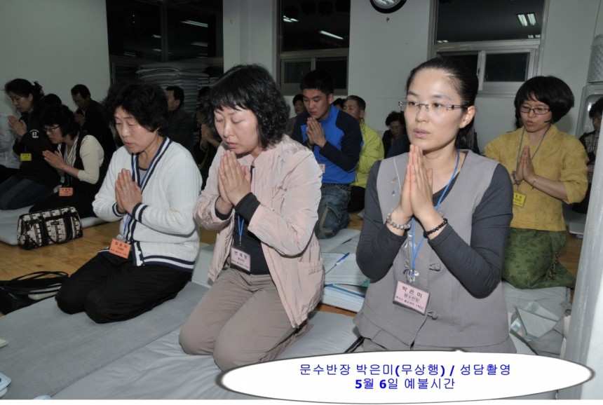 옆에 계신 변계정님도, 김순자님도, 뒤에 있는 신정희님, 송인섭님도 합장한 모습이
