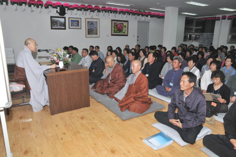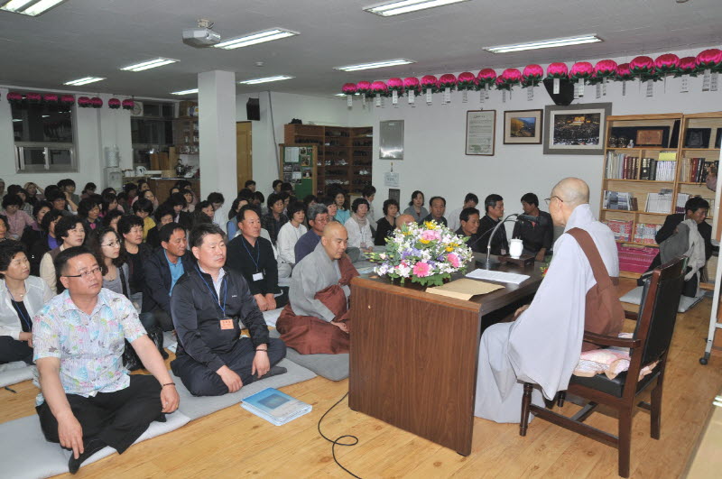 라고 결론을 내리고 강의를 마치셨습니다. 피로가 누적되어 감기가 심해서 무척 힘드셨는데도 2시간을 1분도 쉬지 않고 법문을 해 주셨습니다. 큰 스님께 다시 한번 감사드리며 건강하시기를 기원드립니다.