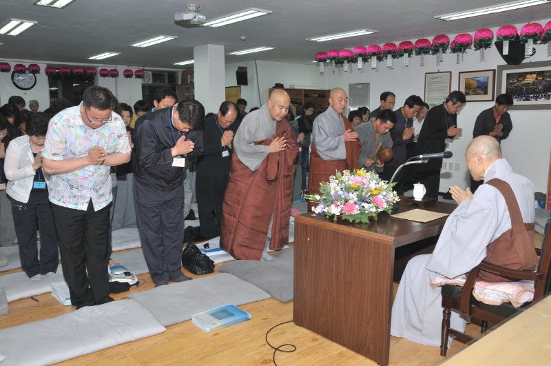 “우리의 목적인 성불을 위해서 불성의 존재에 대해서 확신을 가지고 온전히 믿고 성불안내와 같은 불교교리를 알아야 합니다. 배움을 통해 육바라밀을 실천하는 삶을 사세요. 길은 잘 선택했습니다. 가고 안가고는 여러분에게 달려있습니다. 물가에 말을 끌고 갈 수는 있지만 먹고 안 먹고는 자신에게 달려있습니다. 강의를 충분히 내것으로 소화시켜서 여러분이 불교대학을 잘 나왔다고 느끼시고 훗날 그 때가 좋은 시절이라 느끼며 자랑스러운 여러분이 되시길 바랍니다. 또 여러분 자신을 값비싼 사람으로 만드세요. 지금도 잘 사실겁니다. 하지만 더 잘 살아서 한 두 단계 업그레이드 시키세요. 좁은 아파트라도 부처님 사시는 곳이 되도록 하시고 아내는 남편을 , 남편은 아내를 공경하고 진정 사랑하여 행복한 가정을 만드시길 바랍니다. 더운데 강의 들으시느라 수고 많으셨습니다.”