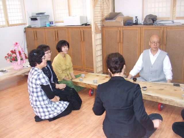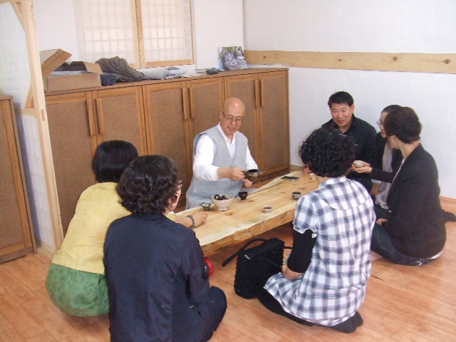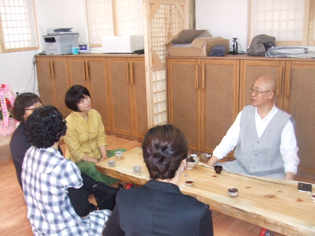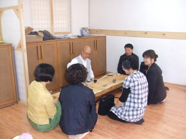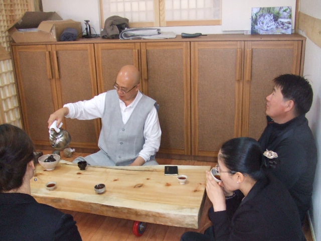 스님께서는 학생들을 위하여 부지런히 차를 우려내주신다.