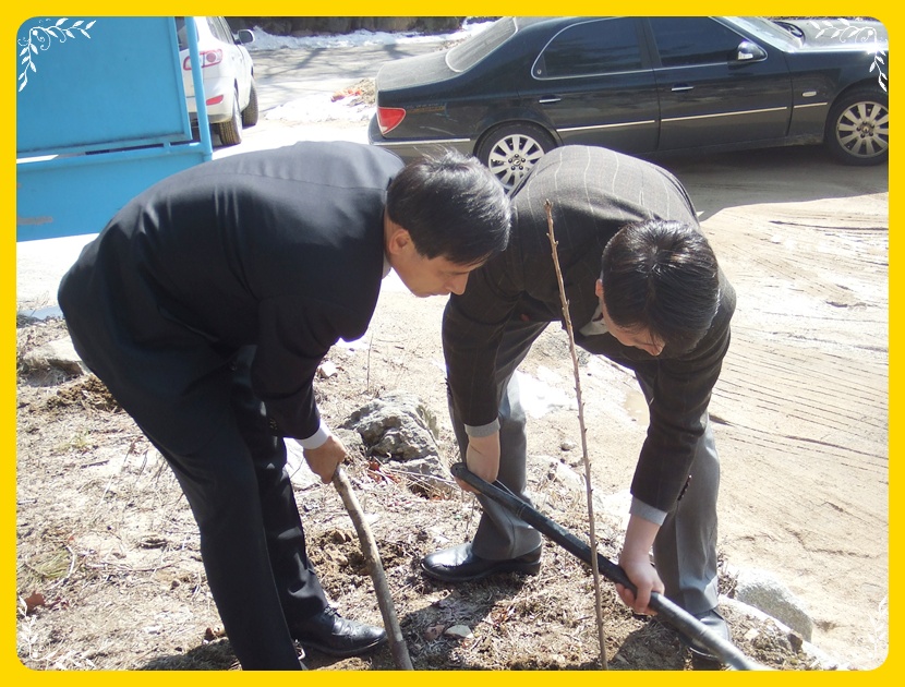 나무를 심는 모습 차......암 보기 좋아요. 오늘 심은 나무는 축복 받았어요.