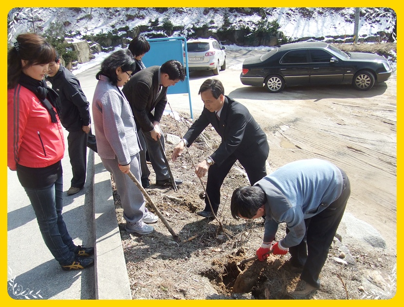 그리고 반장님들과 함께 나무 심는 것을 거들며...