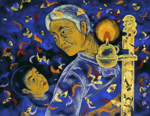 청년은 어머니의 발을 끌어안고 목을 놓아 구슬피 울기 시작했다.