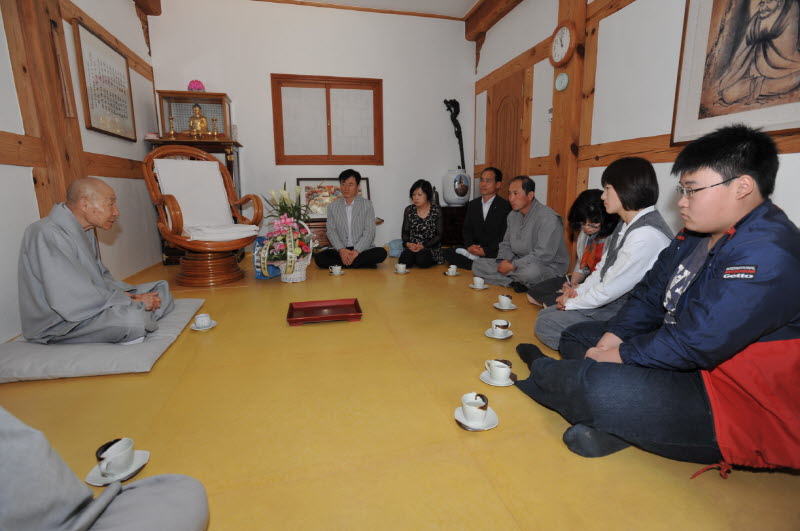 먼저 큰스님을 뵙고 삼배의 예를 올린 후 잠시 앉아서 고귀하신 큰스님의 법문을 들었습니다.