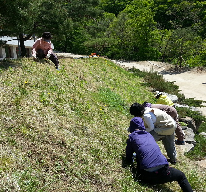 함께 잡초를 뽑으시던 혜오스님께서