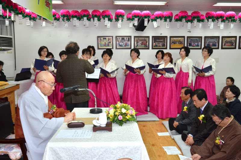 오도심 작성일축서사 행사 때마다 꽃단장 곱게 하시고 축하와 기쁨의 자리 빛내주시는 바라밀합창단의 모습이 어여쁜 꽃입니다.^^