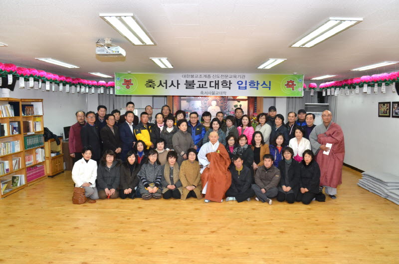 14기 1학년 도반님들이 큰스님과 단체사진을 찍으시고
