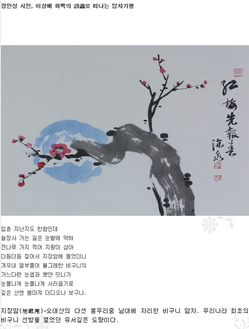 혜안등님의 댓글 혜안등 작성일 07-07-30 00:22 가보고 싶은 곳 오대산 월정사,상원사인데 비구니 암자 지장암에도 같이 가봐야 겠네요. 최초비구니 선방... 가보고 싶은 곳 오대산 월정사,상원사인데 비구니 암자 지장암에도 같이 가봐야 겠네요. 최초비구니 선방...