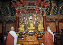 축서사 21일 가행정진중 보탑과 삼존불 포행시간의 여유