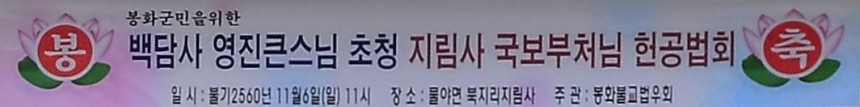 2016년 11월 06일 물야면 북지리 지림사에서 ( 1 ) 페이지 정보 작성자 김동학 ( 돈수 ) 작성일16-11-06 18:34 조회2,682회 댓글0건 본문 국보부처님 헌공법회 !!! 댓글목록 등록된 댓글이 없습니다. 이전글 다음글 수정 삭제 목록