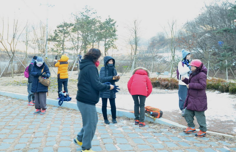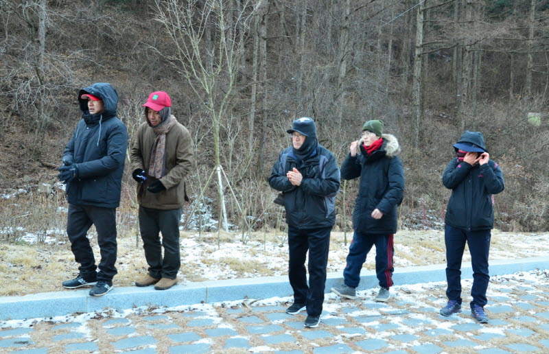 입김이 얼어 머리카락에 미니 고드름을 만들었습니다.^^
