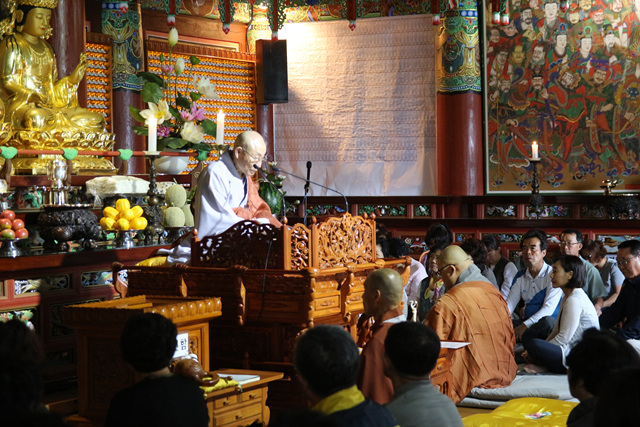 부처님께 예경을 올리고 무여 큰 스님께 법문을 청해 들었습니다.