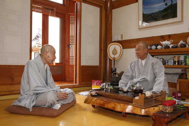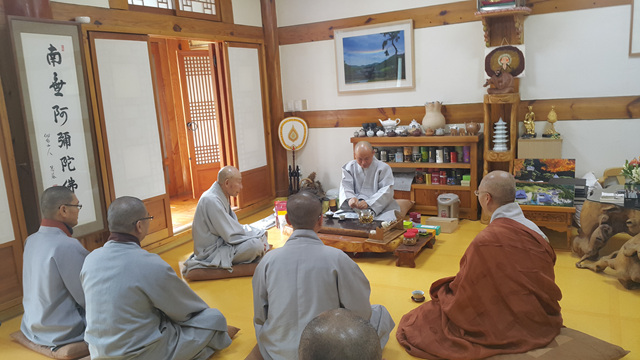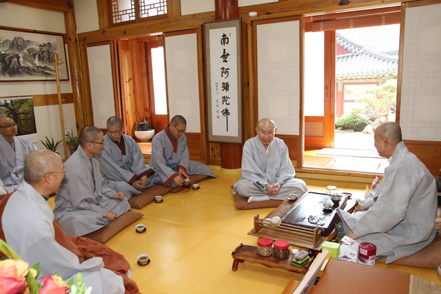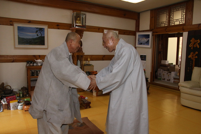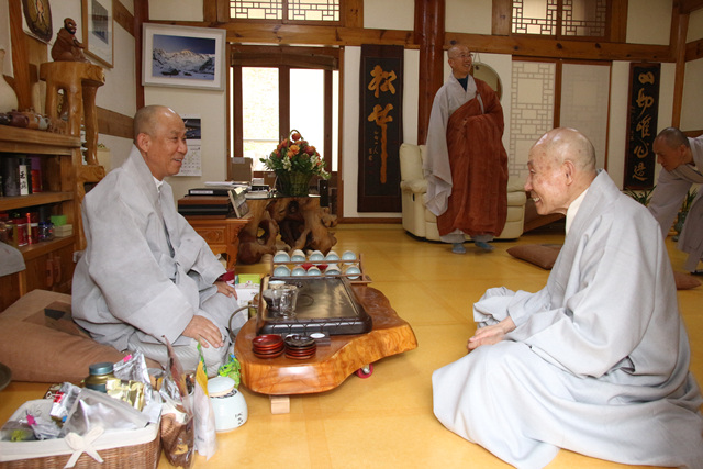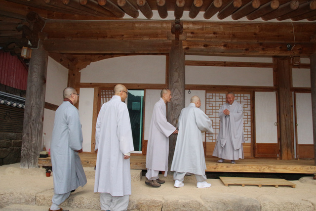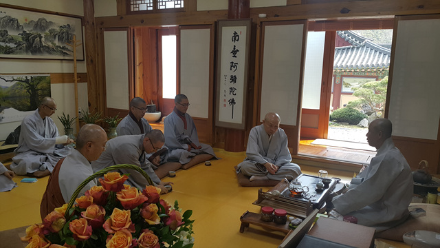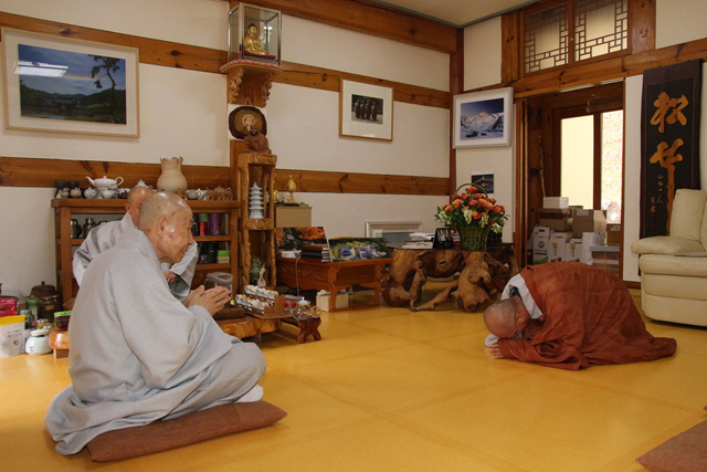 순례길에 해인사 주지 스님께서 큰스님의 접견 하시는 모습을 담아 봅니다