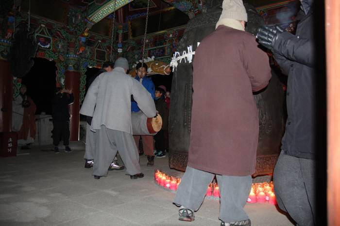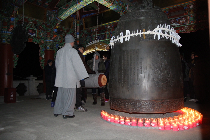 그리도 2016년 1월 1일 밤 12시 정각에 타종식이 있었습니다. 2016년 새해의 소원을 적은 쪽지를 범종에 매달고서 종소리를 울러퍼지게 했답니다.