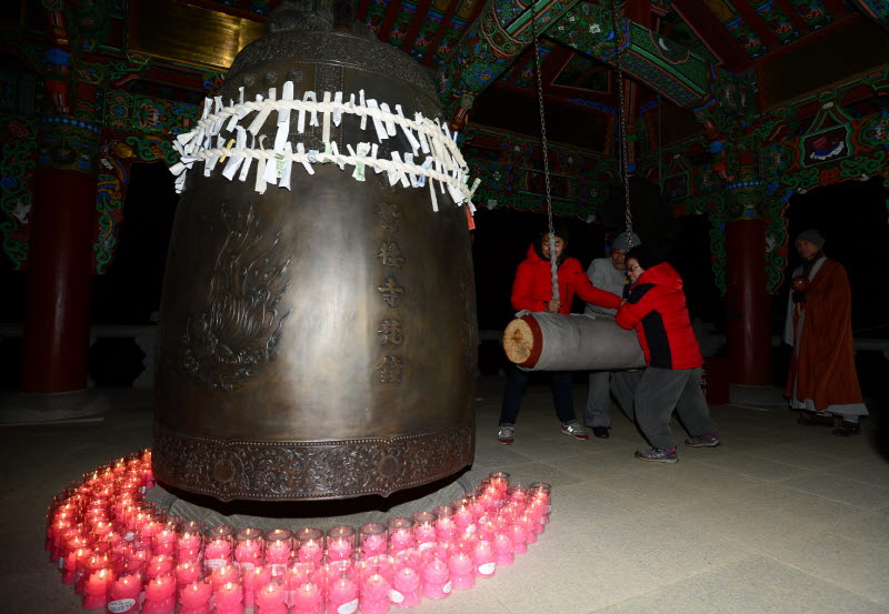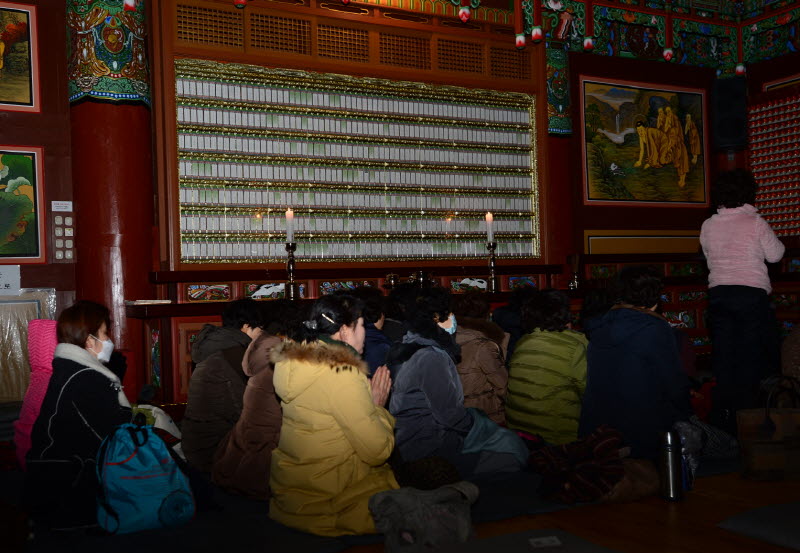 묵은해의 마지막 날 밤과 새해의 아침을 큰 법당에서 보내고 맞았습니다.
