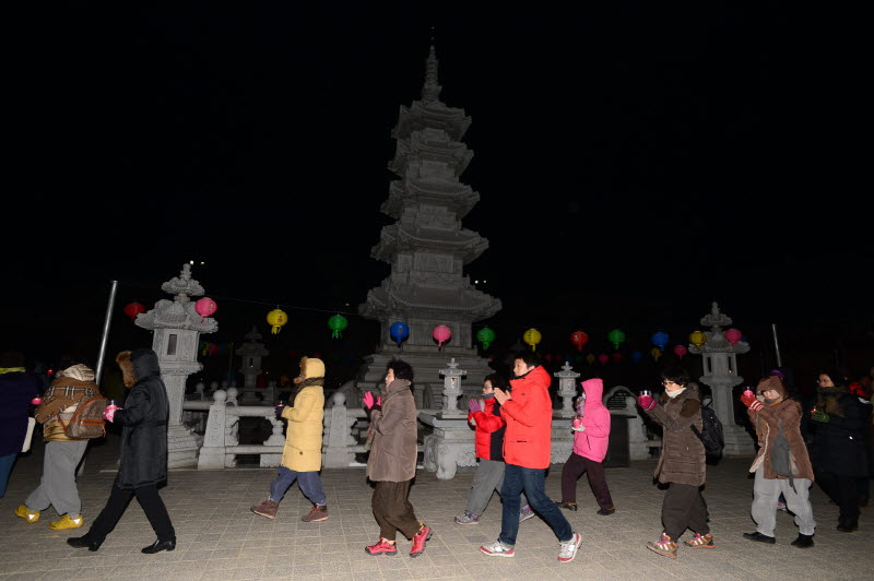 그리고 대웅전 처마에 미리 불을 켜 놓았던 각자의 소원등을 들고 도량을 한 바퀴 돌고,