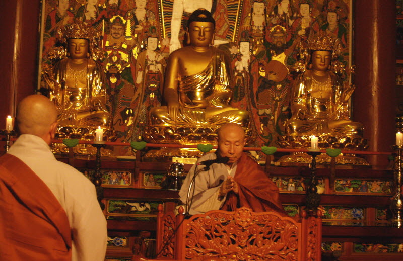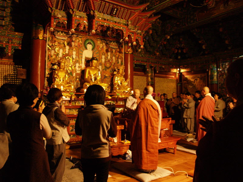 저녁 예불이 끝나고 큰스님 법문 '장시랑 자소에게 답함' 이 있은 후 숨소리 조차 잦아들게 하는 화두 참구가 새벽 예불 전 까지 이어졌습니다.