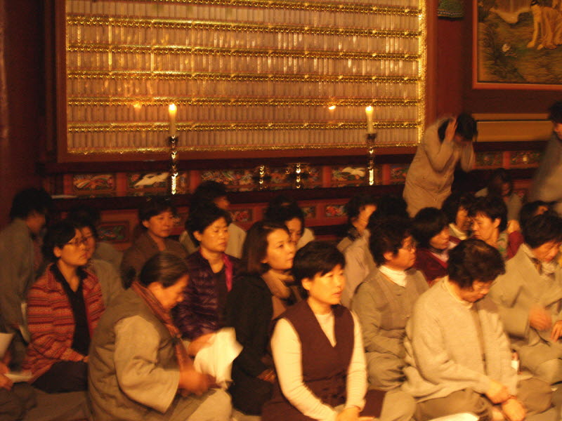 120여명의 참선 법회 회원들이 철야 정진을 하셨습니다.