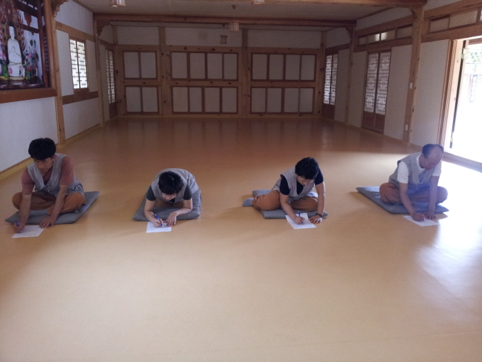 여기저기 휴가인파로 북적대는 저 아래 세상과 다르게 800고지 축서사에서 여유롭게 휴가를 즐기시는 휴식형 템플스테에 참가 하신 분들의 풍경